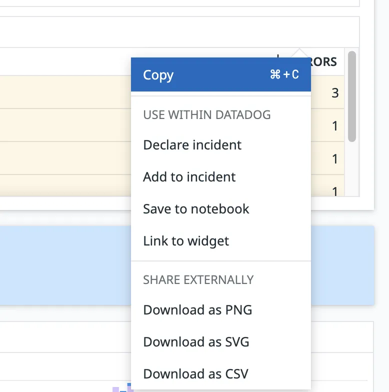 If you would like to create your own dashboard to monitor specific logs or metrics, it’s useful to copy certain widgets that have the info you’d like to track.