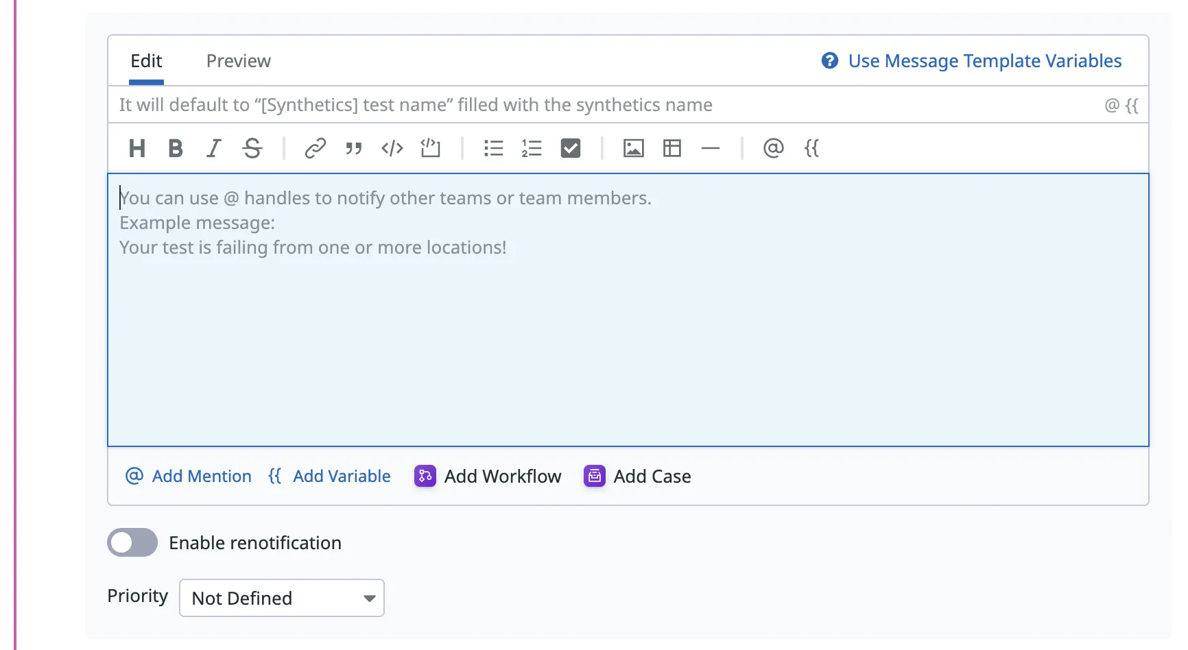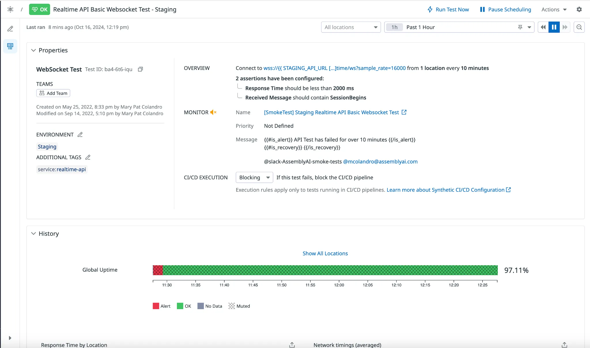 {{#is_alert}} API Test has failed for over XX minutes @pagerduty-AssemblyAI {{/is_alert}}