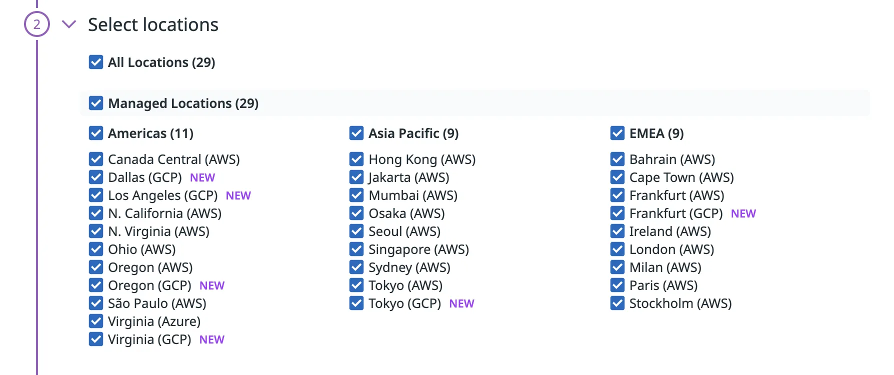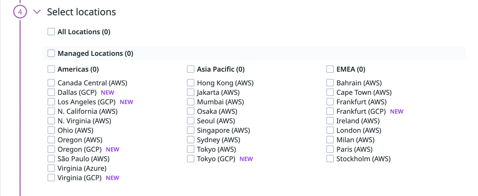 Select the locations you would like the test to be run from, typically we only run tests from Oregon (AWS). Some tests may be required to be run from multiple locations (Engineering would let us know where to select, if this is the case).
