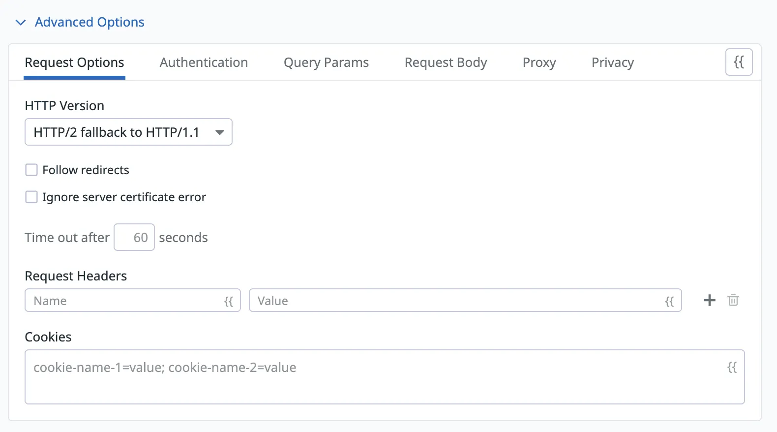 You can also set the headers, authentication and request body in the advanced options.