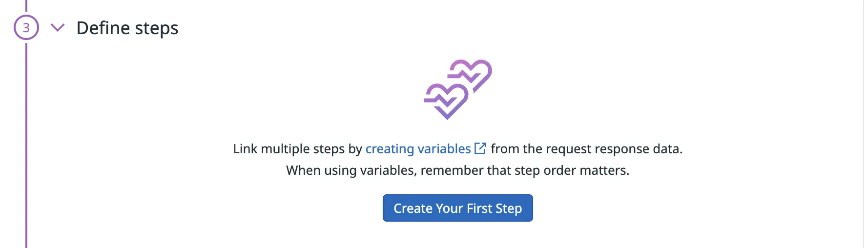 This is similar to creating individual API tests, with the added functionality of being able to extract variables from each step to be used in future requests. For example, first submitting an audio file to the /upload endpoint and then extracting the resultant audio URL.