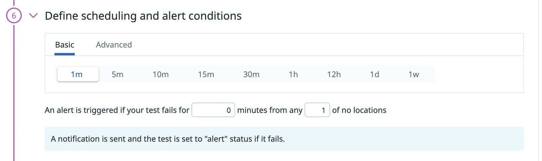 Define the cadence you would like the test to be run on.