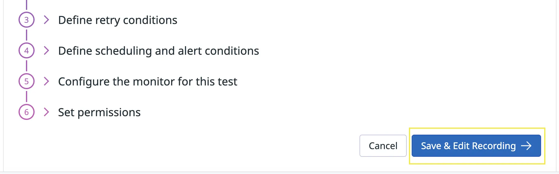 You can start navigating and inputting values such as login details, and DataDog will record each step. After completion, select Stop Recording.