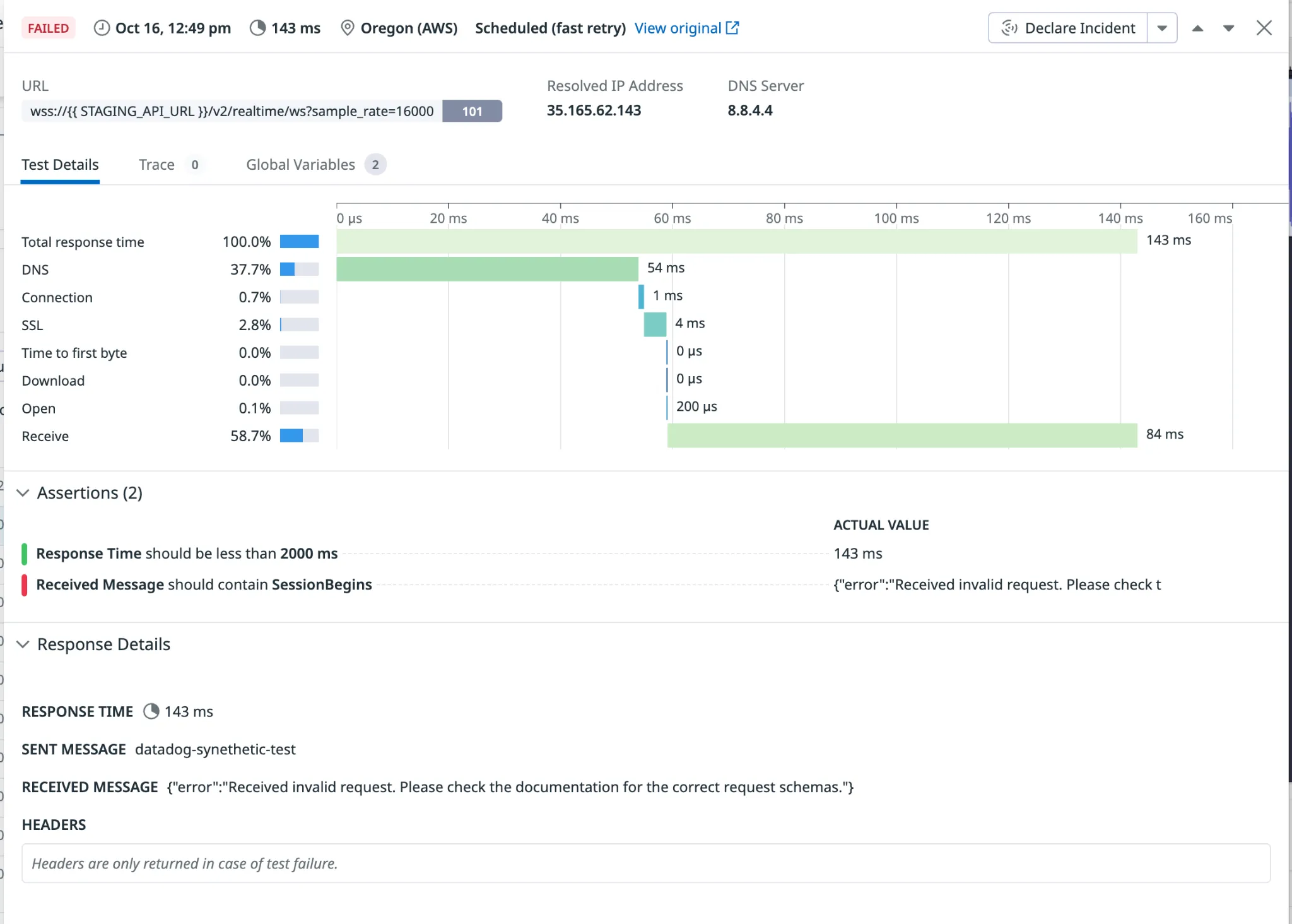 From the details page, we can see the result of the assertions.