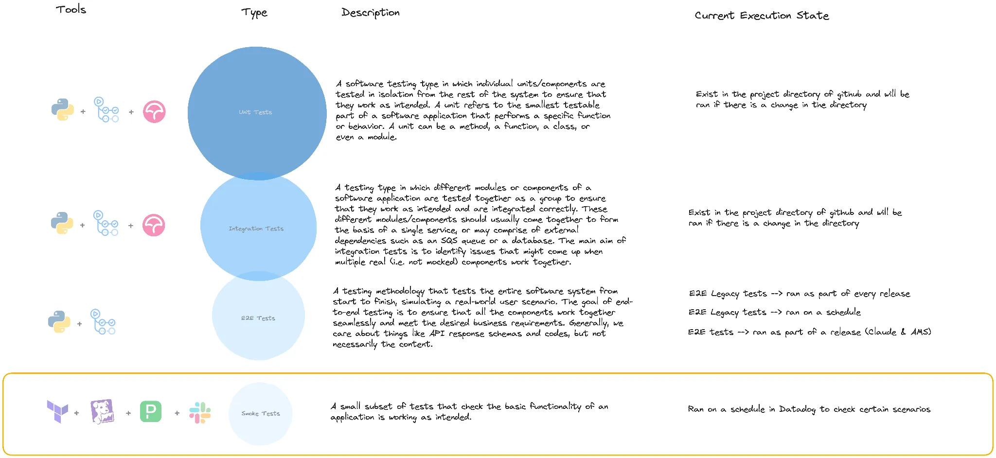 We currently use Datadog to set up synthetic tests that run on a schedule to check that our application and API’s are working as intended, these are named smoke tests.