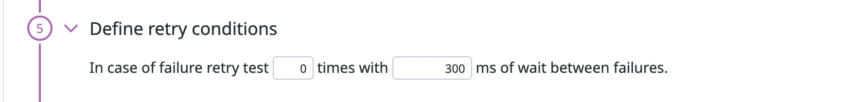 Select the conditions of a retry, involving the number of retries and the wait between failures.