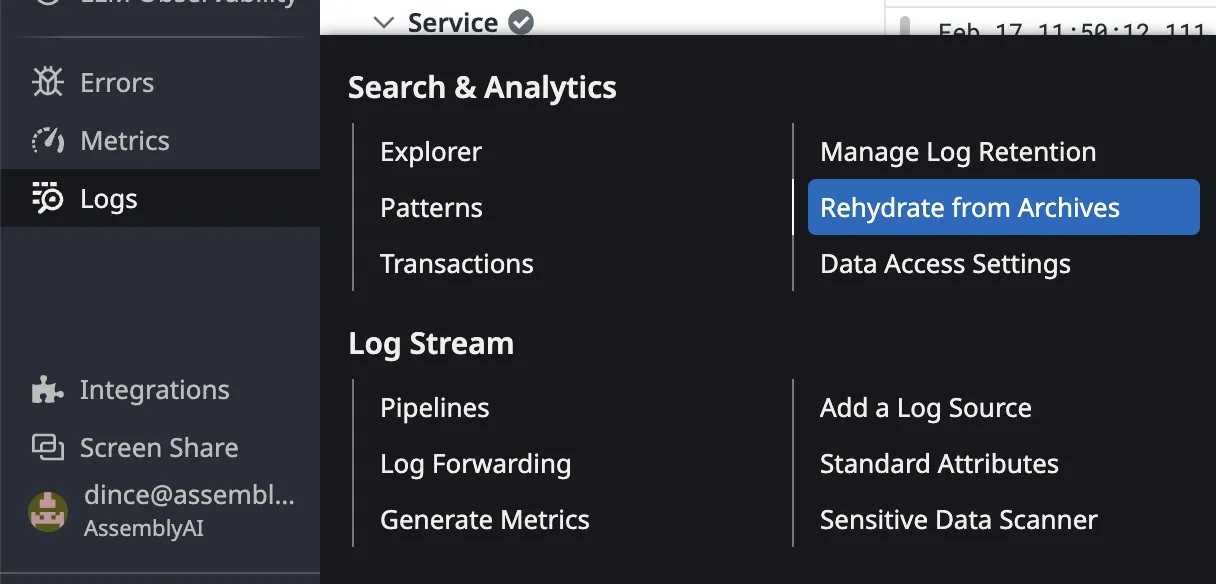 Our Datadog logs recently had their retention policy changed from 14 days to 7 days, meaning you may more likely encounter situations in which the logs are no longer accessible for a query you’d like to search. To combat this, you can rehydrate the logs from our archives via the following outlined steps.