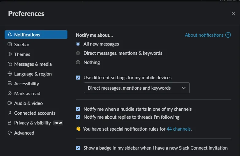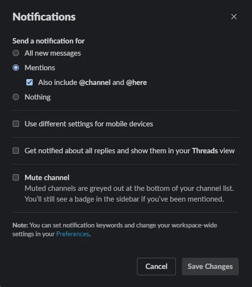 From there, you can change the settings for individual channels as needed if you don’t need to be notified of all new messages for that channel.