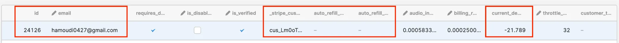 In this example, the customer doesn’t have auto-refill and has a negative balance. They will not be able to transcribe files until they add more credits.
