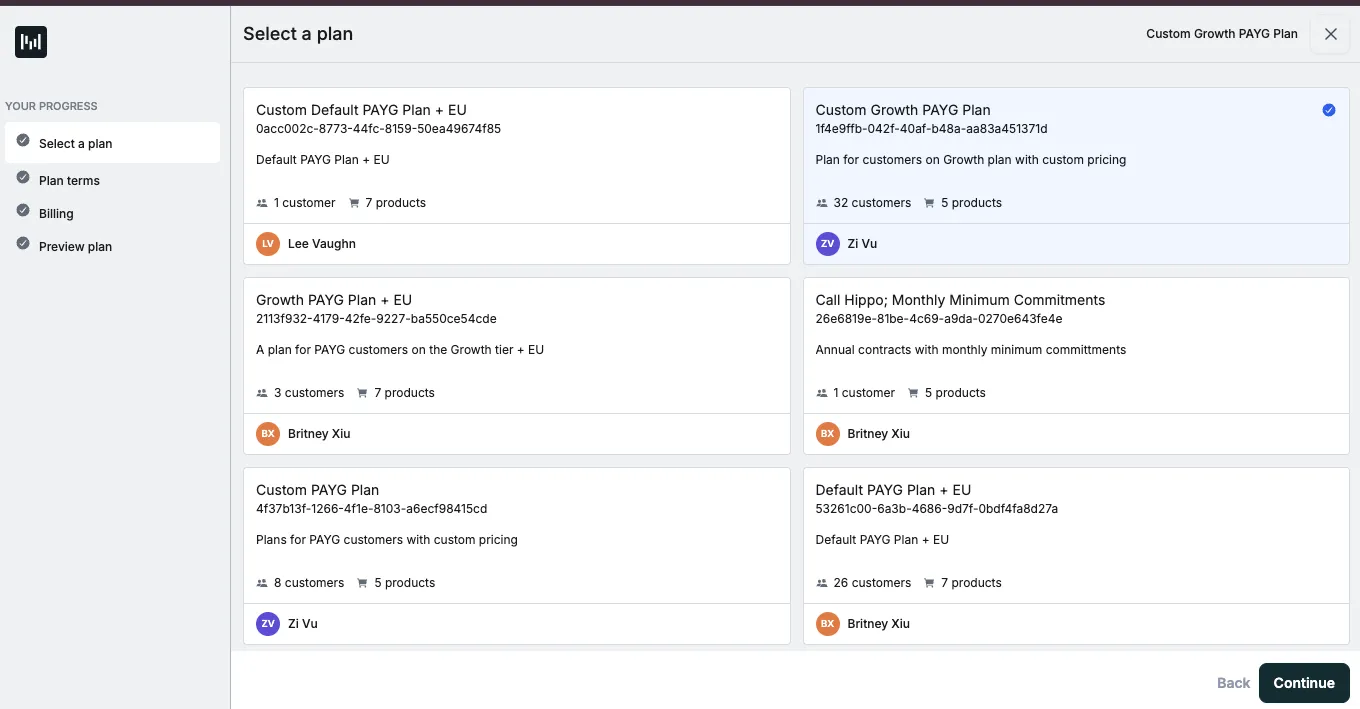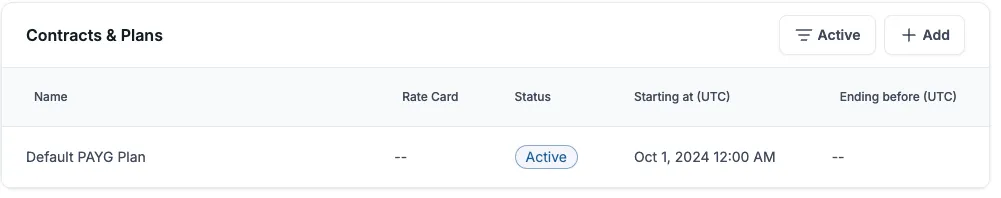 Now create a new PAYG plan according to the rates in the initial request. Make sure to start the plan on the same date the contract ends. The customer will likely be moving to a new PAYG plan (i.e. PAYG, Custom PAYG, or Growth), but if the request is ambiguous, double check with the requester. If they need the rates of their new plan to match their old contract, you will likely need to create a new Custom PAYG plan and then manually match the previous contract’s rates.