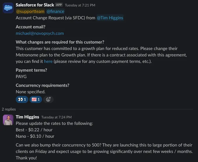 Are there any other additional requests? In the above case, there is a request to increase async concurrency. This is a separate process the instructions for which can be found in the Retool playbook under the section “Adjust a Customer’s Concurrency”.