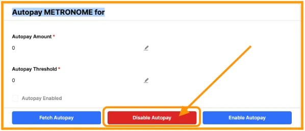 - Next, in the “Autopay METRONOME for [account email]” widget, click “Disable Autopay”