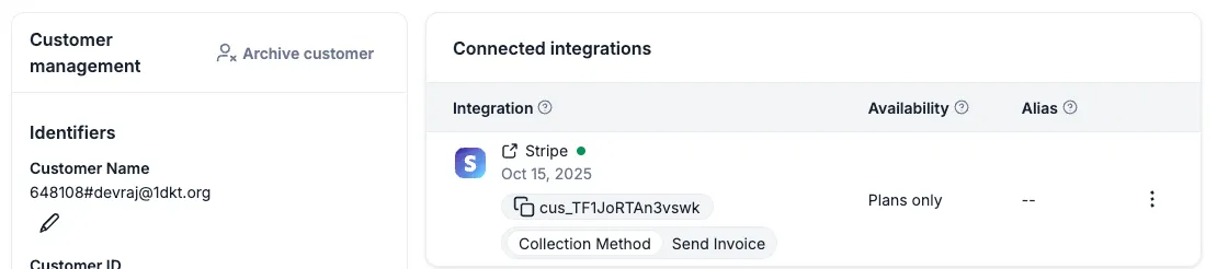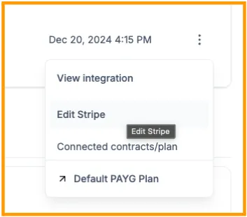 - In the “Connected integrations” section, under “Stripe”, click the three dots next to the connected date
