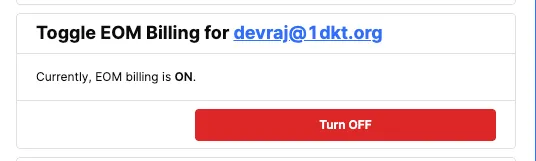 - This will move the customer to EOM billing and hide pricing/credit card options on the front end