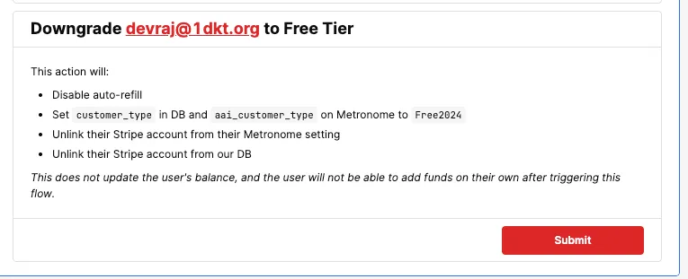 - Change their customer type to PAYG and add their Stripe customer number under that column in Retool