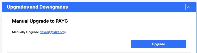 - If the user is upgrading from a free account: Update the user’s throttle limit to standard PAYG limits (Throttle Limit = 200, Throttle Limit Realtime = 100) or custom limits as outlined by the AE. If the user is already set up with custom throttle limits, do not adjust those limits.