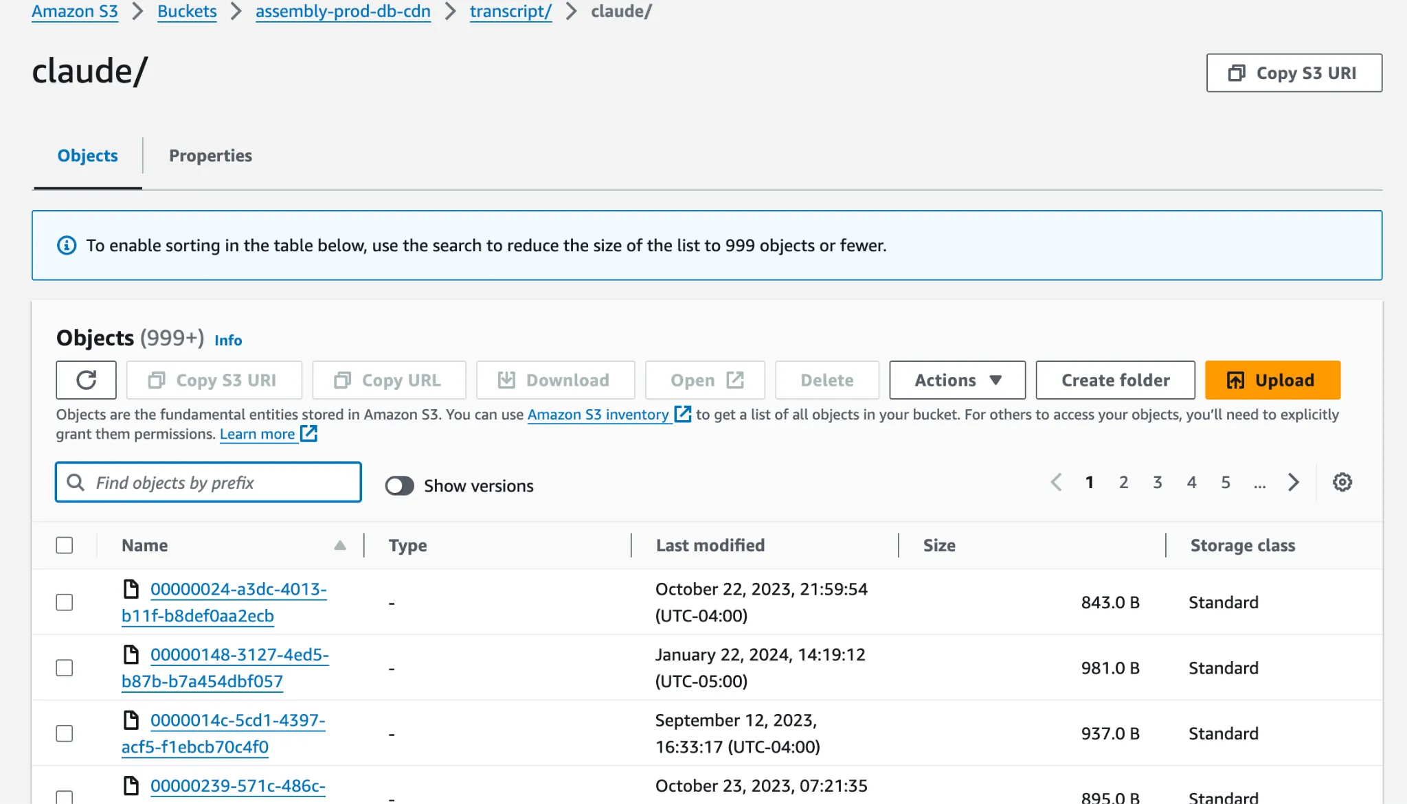 Navigate to the transcript/claude bucket in AWS.