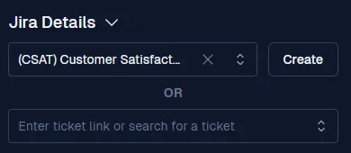In the sidebar for the issue in Pylon, scroll down to the Jira Details section and click the Create button.