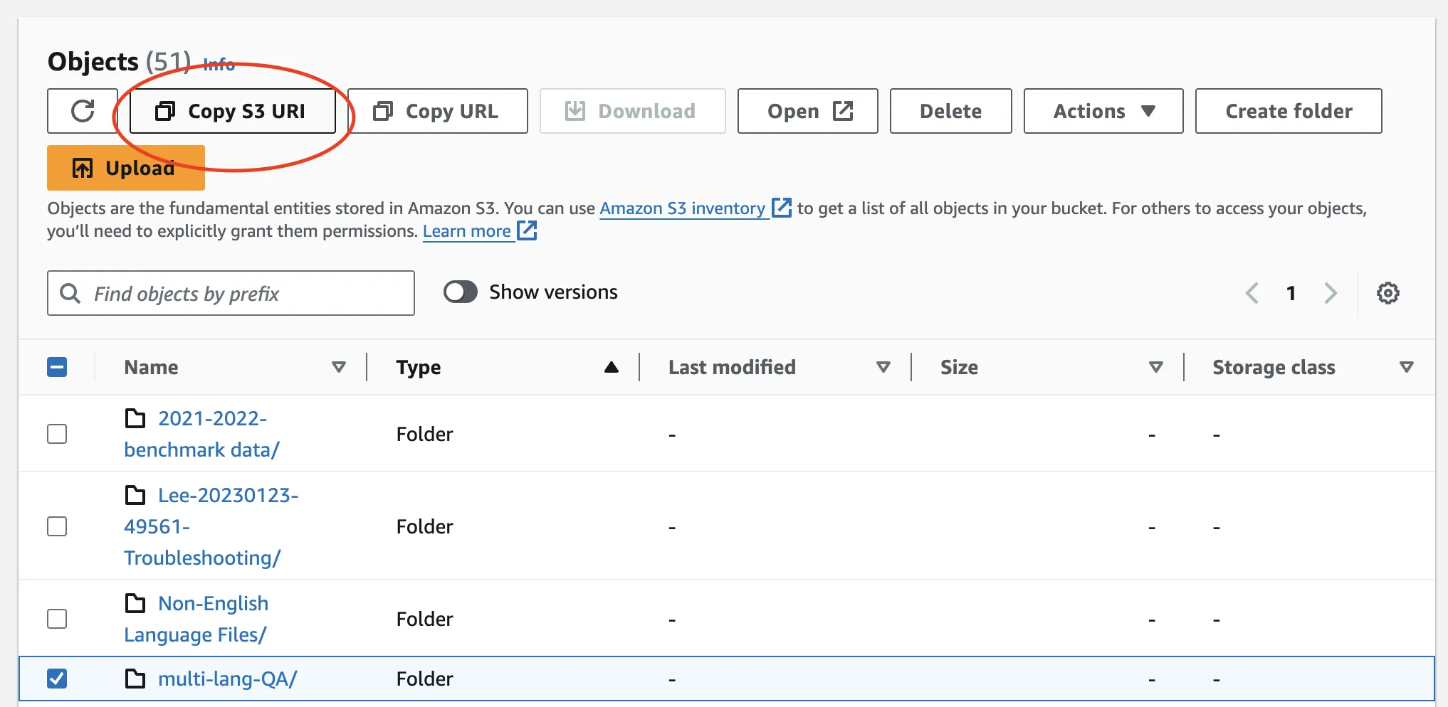It will look something like this: s3://dev-aai-support-team/multi-lang-QA/