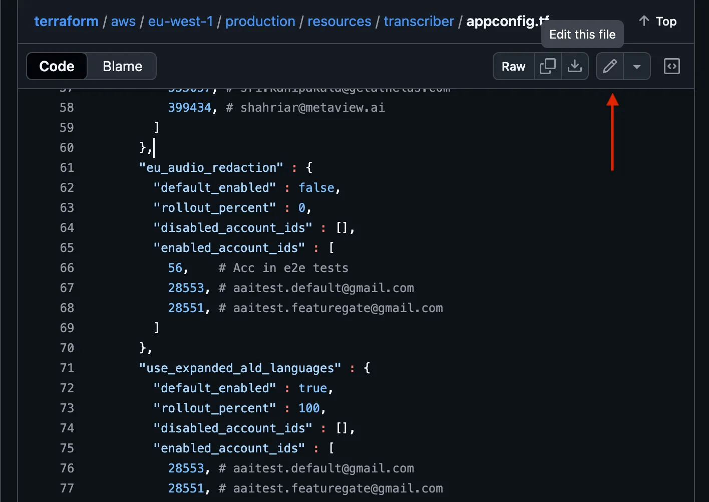 One you are in the new branch, you will need to add the customer’s account ID each of the two files that contain the IP lists linked above. You can do this by hitting the pencil edit icon in the upper right hand corner.